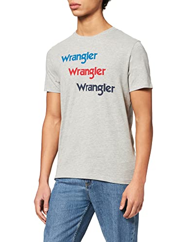 Wrangler SS Repeat Tee T-Shirt, Mid Grey, L Uomo