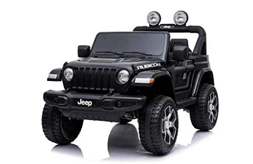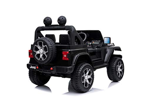 Jeep Wrangler Rubicon Macchina Elettrica 12V per Bambini 2 Posti con Telecomando Sedile in Pelle Full Optional (Nero)