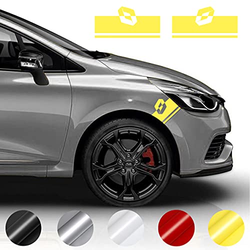 Wraplab x2 Adesivi Auto Sport | Compatibile con Renault, Renault Captur, Renault Clio 4, Renault Clio 5, kadjar, Clio 5, Renault twingo, Renault Clio 3, Renault Megane 4, Renault Clio (Giallo Lucido)