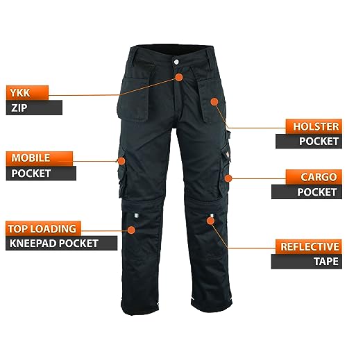WrightFits Pantaloni da Combattimento Cargo Pro-11 con Tre Tasche e Ginocchiere da Lavoro per carichi Pesanti di Sicurezza da Combattimento per Uomo 34W / 29L Nero