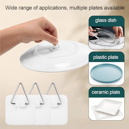 WRIRKN 10 Pezzi Ganci Autoadesivi Invisibili Piazza Autoadesivi per Piatti con Gancio in Metallo Ganci Adesivi Plastica Ganci Appendi Quadri per Appendere lastre di Plastica