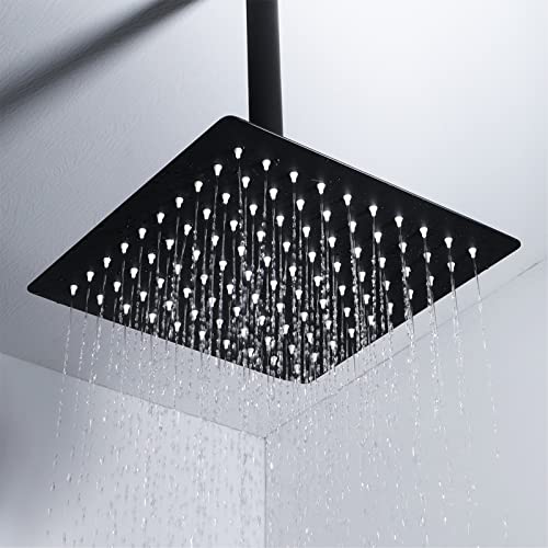 ★ MATERIALI PREMIUM: Realizzato in materiale di alta qualità in acciaio inossidabile 304, design quadrato del soffione doccia, aspetto moderno e minimalista, design elegante e nero opaco completa l'arredamento tradizionale e moderno, montaggio a soffitto del soffione doccia a cascata.