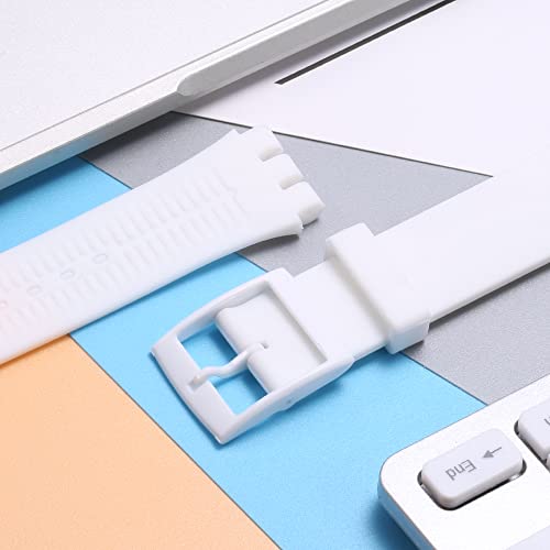 WRISTARMOR Sostituzione cinturino in silicone da 17 mm per Swatch GS124 GW164 GB274 Lady Sweatproof gomma Pin fibbia cinturino di ricambio con strumento (bianco)