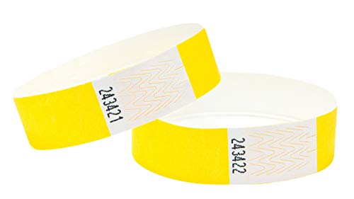 J&R Wristbands Braccialetti Tyvek, Braccialetti Simili alla Carta Utilizzati per Eventi, Discoteche, Parchi Acquatici, Ecc, Confezione da 100 Pezzi da 3/4 Pollici (Giallo Sole)(19 X 250 Millimetri)