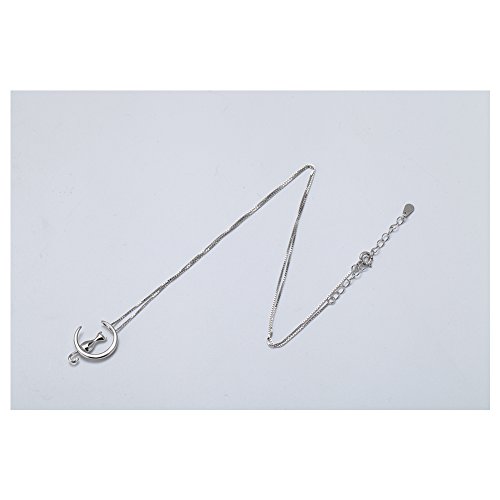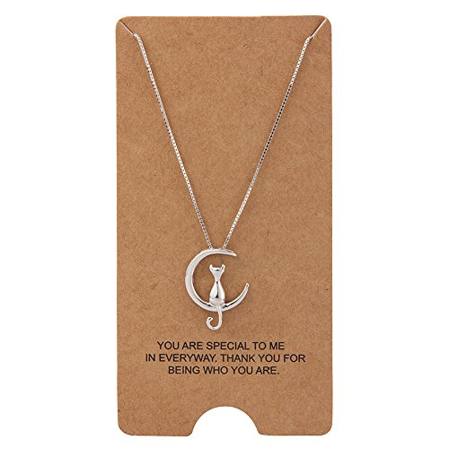 Wristchie, collana in argento Sterling S925 con ciondolo gatto sulla Luna e argento, colore: Silver, cod. M-XL037