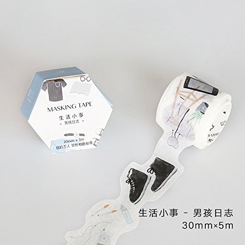 WRITIME Adesivi nastro adesivo Washi nastro alieni e nastri adesivi Lovers Acquerello etichette stelle piccoli rotolo account nastro scandinavo, Life Trivia - Boy Diary 30Mm