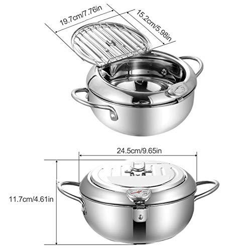 WROPE Padella Tempura, in acciaio inox, con termometro e coperchio, per cucinare in cucina, patatine fritte, pesce fritto