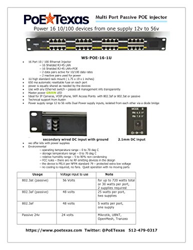 WS-POE-16-48v120w, 16 Porte iniettore Poe per dispositivi 802.3af o passivi 802.3at con Alimentazione 48v120w