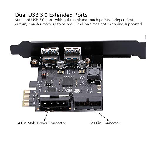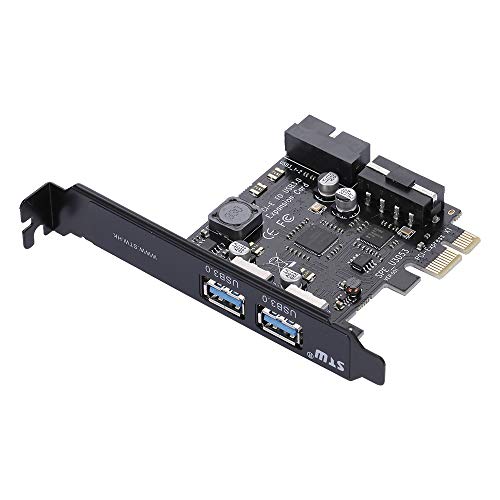 Wscoficey PCI-E a USB 3.0 2 porte PCI Express Card Mini PCI-E USB 3.0 Hub Controller Adattatore con connettore interno USB 3.0 19 pin e 5V 4 pin maschio alimentazione doppia porta connettore