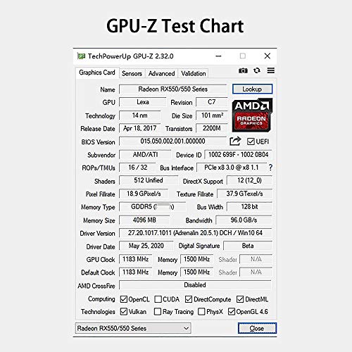 Wscoficey Scheda grafica AMD Radeon RX550 4G, GDDR5 128 bit 6000 MHz VGA + GPU DVI-D