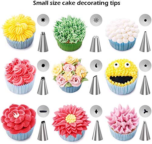 Con 32 beccucci in acciaio INOX, 2 sac à poche riutilizzabili, 2 accoppiatori in plastica riutilizzabili e 2 supporti per fiori riutilizzabili è possibile creare facilmente tutti i tipi di motivi su una torta.