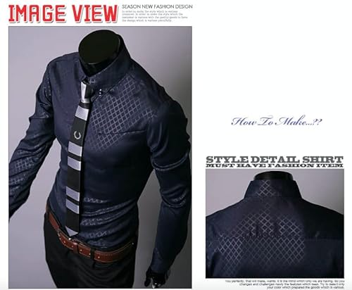 WSLCN Camicia Uomo Slim Fit Camicie Classiche con Bottoni Maniche Lunghe Blu Navy L