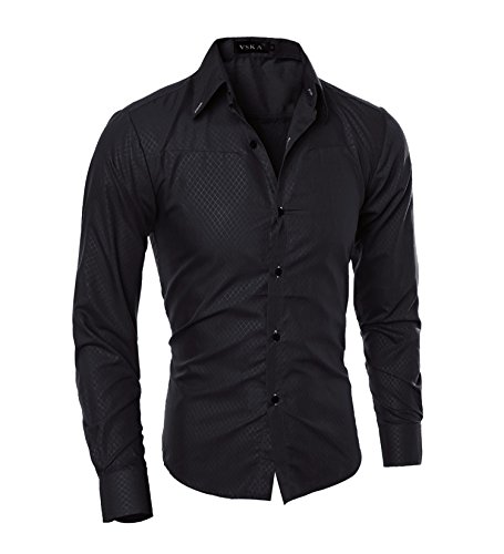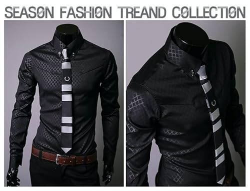 WSLCN Camicia Uomo Slim Fit Camicie Classiche con Bottoni Maniche Lunghe Nero M