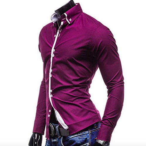 WSLCN Camicia Casual da Uomo Manica Lunga Bottoni Quadrato Contrasto Colore Slim Fit Fucsia EU M