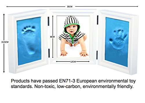 WSLCN Cornice per Foto Neonato Fango per Impronte di Mani e Piedi del Bambino, Souvenir di Compleanno (blu)