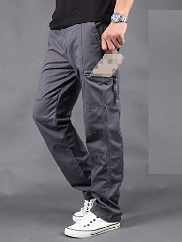 WSLCN Pantaloni Dritti da Uomo Pantaloni Casual in Vita Elastica Pantaloni Cargo in Cotone Multi-Tasca Grigio 3XL