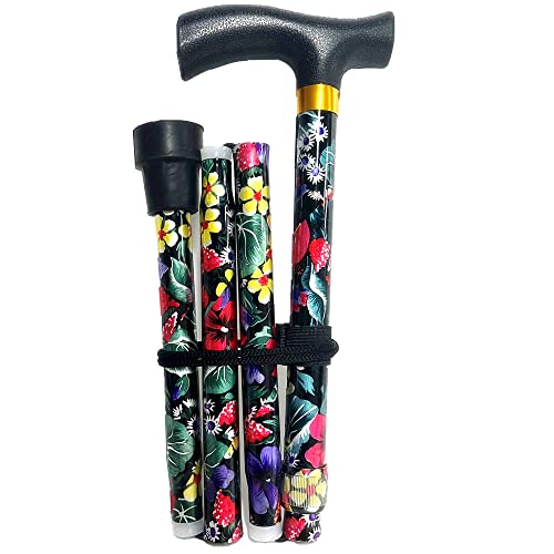 Wsobue Bastoni da Passeggio, Bastone da Passeggio Pieghevole Canna da Uomo Donna, Canna Portatile con Manico a T Base Leggera Regolabile, Base Antiscivolo (Bastone di Fiori)