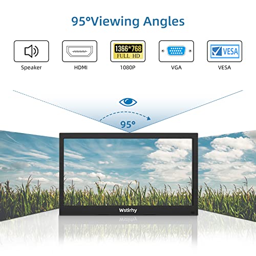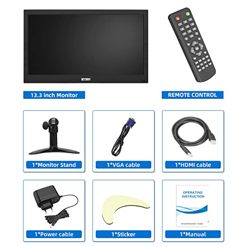 Wstirhy Monitor da 13,3 pollici 1366 x 768 LED, piccolo monitor PC con HDMI VGA AV BNC USB, Mini monitor per Fire Stick, PC, computer, Raspberry Pi, altoparlante integrato