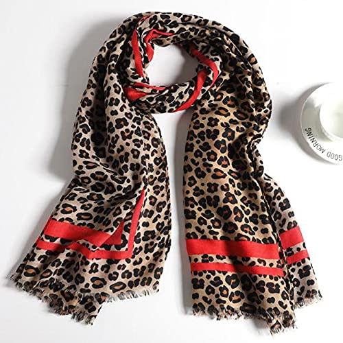 Wsxcfyjh Sciarpa Scialle Donna Sciarpa con Stampa Leopardata alla Moda da Donna con Frangia Verde Rossa E Scialli per Donna Taglia Unica Rossa