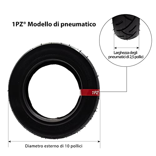 Pneumatico 10x2.50, camera d'aria 10x2.50 con stelo valvola piegato (non 90 gradi), questo pneumatico ha un diametro esterno di 10 pollici, adatto per cerchioni da 6 pollici