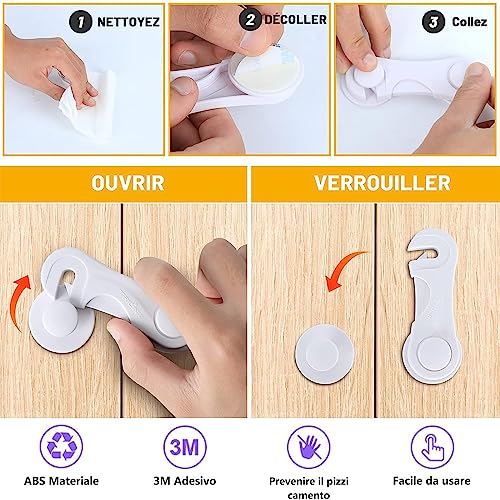 【Ecologico e durevole】Materiale Le nostre serrature di sicurezza per bambini sono realizzate in ABS atossico, che offre maggiore flessibilità e durata, offrendo a tuo figlio una casa sicura senza prodotti chimici. Fornisce maggiore flessibilità e durata per proteggere il bambino da prodotti domestici potenzialmente tossici o pericolosi.