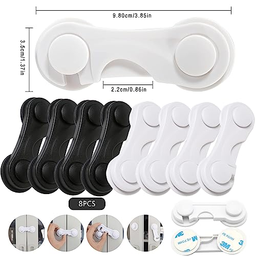 WTpin 8 Pezzi Blocca Cassetti per Bambini, Forte Cassetto Adesivo di Sicurezza, Blocco Bambini per Armadio e Cassetti, Blocca Cassetti, Rotazione a 360 Gradi, Adatto per Mobili (Nero + Bianco)