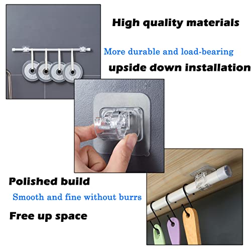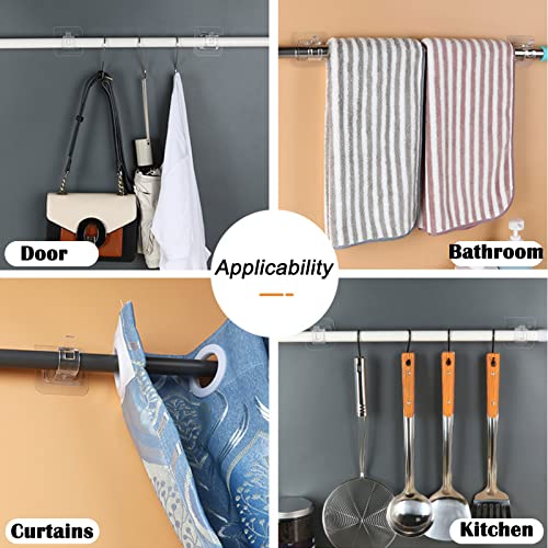 ❤️【Elenco dei pacchetti】Il set contiene 6 supporti per aste per tende autoadesivi trasparenti, le dimensioni sono 6 x 6 cm. Un singolo gancio può sopportare 5 kg, adatto per aste per tende o aste per asciugamani con un diametro di 1-2 cm.