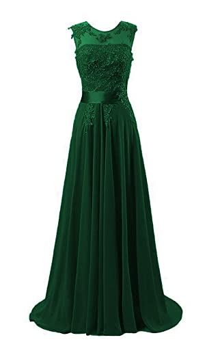 WTWVIAN Donne Lungo A-Line Tondo A terra Chiffona Pizzo Abito da sposa da damigella d'onore, Verde scuro, 46