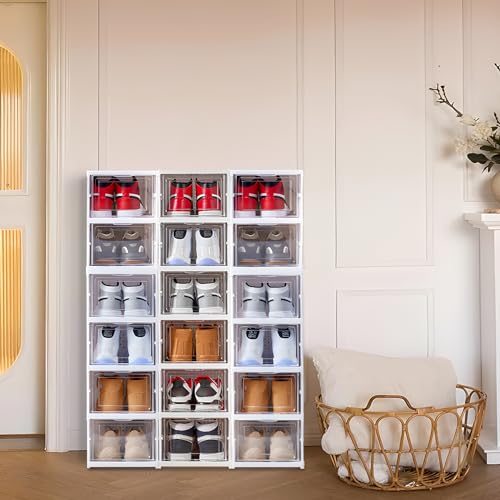4. Design del display trasparente: mostra e organizza le tue scarpe preferite con una contenitori scarpe di visualizzazione chiara. I nostri contenitori per scatole porta scarpe premium sono l'aggiunta perfetta a ogni guardaroba e camera da letto, rendendo la tua casa, camera da letto e negozio pulita ed elegante.