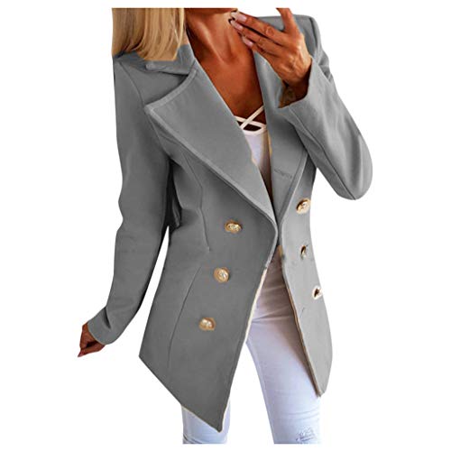 WUDUBE Blazer Slim Fit a Manica Lunga a Bavero, Giacca Doppio Petto in Lana da Lavoro