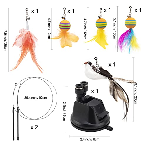 WUERQIE 8 pezzi Giochi Interattivo Giocattoli per Gatti,Giochi con Piuma per Gatto,Gioco per Gatti con Base a Ventosa,Gatti Piccoli Interattiva per Giocare e Fare Esercizio Interno
