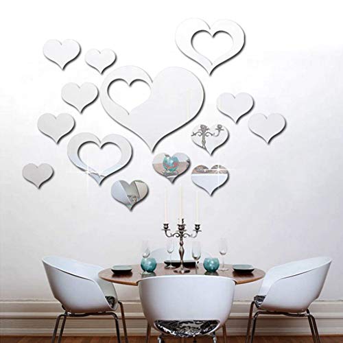 Wufeng Carta da Parati 16Pcs / Set di Amore del Cuore Specchio Adesivo Acrilico 3D Fai da Te Specchio del Salone smontabile Decalcomanie della Parete