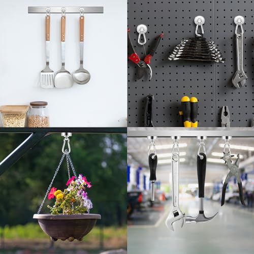 ✔️【Moschettone】: Il moschettone di questo gancio può essere progettato con rotazione di 360° e oscillazione di 180°. Copre tutti i quadrati necessari per ganci, quindi può essere appeso da qualsiasi direzione. Dal momento che il moschettone è chiuso, puoi appendere quello che vuoi senza preoccuparti che cada fuori!