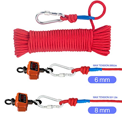 Wukong - Corda Magnetica da Pesca, 20 m, con Chiusura di Sicurezza, Diametro 6 mm/8 mm, sicura e Durevole