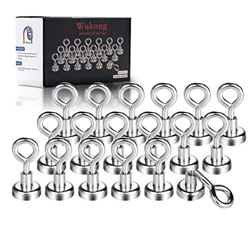 Wukong Gancio Magnetico,16mm Potente Magnete Al Neodimio Supporto a Gancio, Magnete Con Gancio Ultra Forte Al Neodimio Zincato (18 Pack)