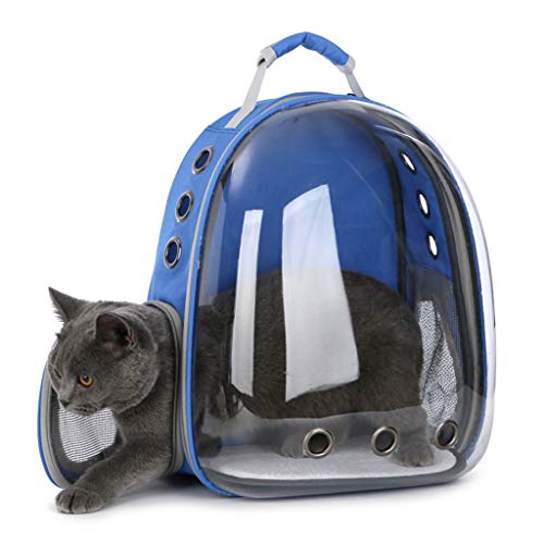 WuLi77, zaino per cani e gatti, traspirante e trasparente, ideale per escursionismo, passeggiate, ciclismo e attività all'aperto Blu