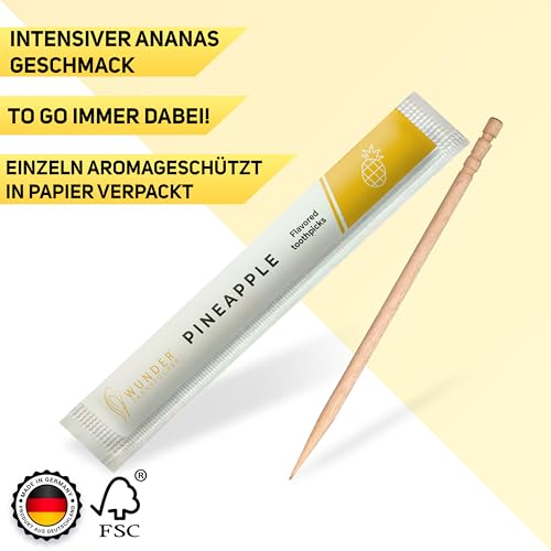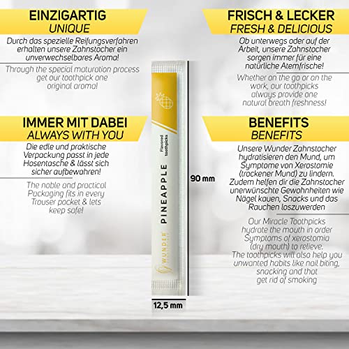 Wunder stuzzicadenti con gusto - 100 stuzzicadenti confezionati singolarmente + 1 dispenser per stuzzicadenti - stuzzicadenti aromatizzati - dispenser per stuzzicadenti (Ananas)