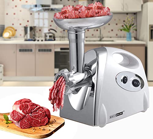 WUPYI2018 - Tritacarne elettrico, 2800 W, con insaccatrice e 3 piastre di macinatura, in acciaio inox