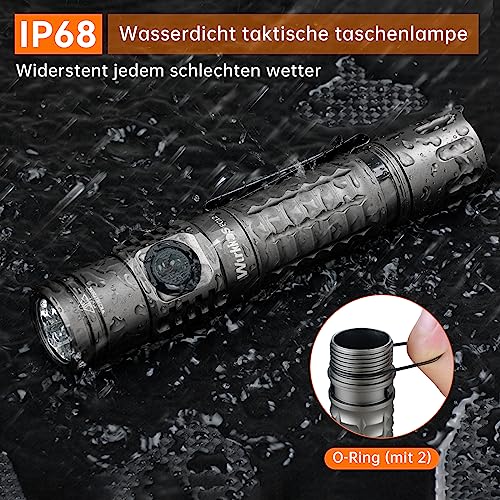 Wurkkos FC12 Torcia tattica EDC Super Bright Torch 2000Lumens con SFT40 LED, USB-C Fast Charging IPX-8 impermeabile livello luce LED di emergenza per il campeggio escursionismo pesca ciclismo (Grigio)