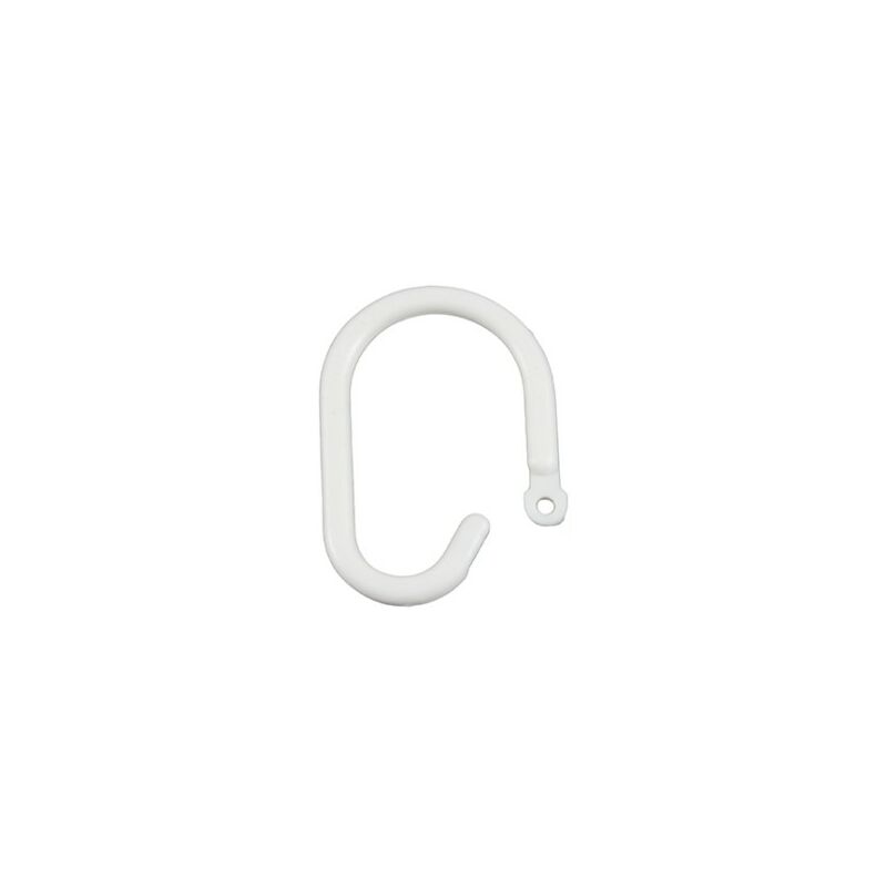 Anelli in plastica con chiusura.-Colore Bianco.-Sacchetto da 100 unità.-Per tende da bagno.