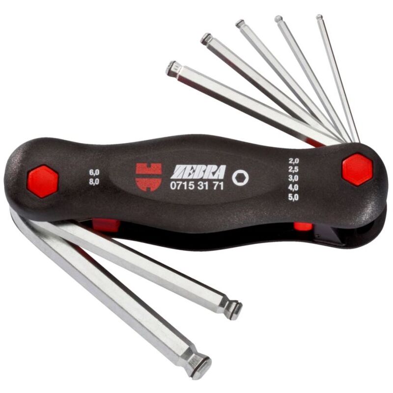 Cacciavite angolare Set prese esagonale 7 pezzi. Nell'alloggiamento in plastica rinforzato in fibra di vetro. Descrizione: • Blade esagonale cromato opaco • Chiave di sollevamento pratico per una facile selezione della dimensione della chiave desiderata • Può essere utilizzato dalla posizione di 180 ° come cacciavite • Contenuto: SW 2;