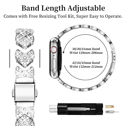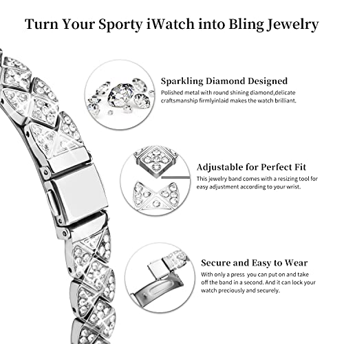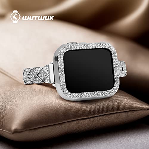 Wutwuk Compatibile con Cinturini Apple Watch Slim Bling con Cassa 38mm per Donne e Uomini, Cinturino di Ricambio in Metallo in Acciaio Inox per iWatch Serie 3 2 1 38mm Argento