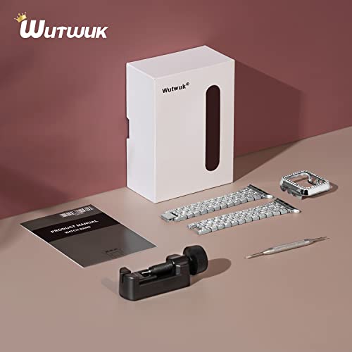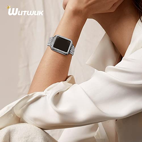 Wutwuk Compatibile Cinturino per Apple Watch 44mm con Custodia Protettiva Bling, Cinturino da Donna in Metallo Scintillante per iWatch Series SE 2/SE/6/5/4 - Argento 44mm