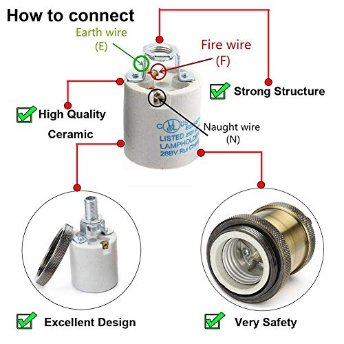 【Facile installazione】 Appositamente progettato per lo standard E27, collegare correttamente i fili al polo positivo / negativo, quindi avvitarli semplicemente con le lampadine. Attenzione: la lampadina e gli accessori non sono inclusi nella confezione.