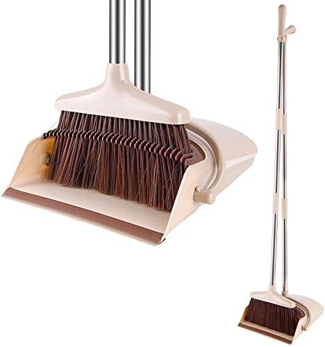 Wuudi Scopa e Paletta Impostato con Manico Lungo en Plastica Spazzate Morbido Setola Scopa Spazzare per Ufficio e Casa Marrone