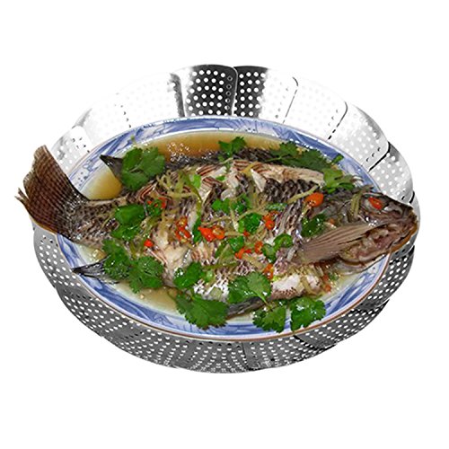 Wuudi vaporiera in acciaio INOX con manico telescopico pieghevole allungabile termoretraibile cottura a vapore si adatta a qualsiasi dimensione pentola a cottura rapida