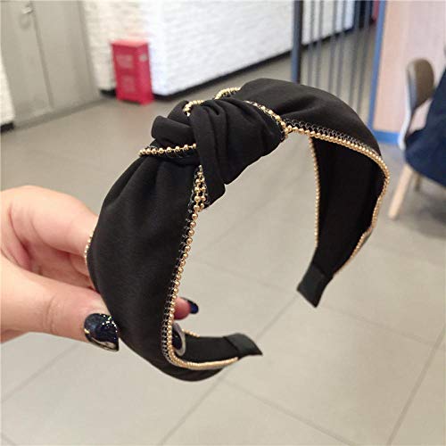 Wuwei - Cerchietto da donna con bordo, annodato medio, con bordo largo, accessorio per capelli per donne, signore e ragazze (nero)