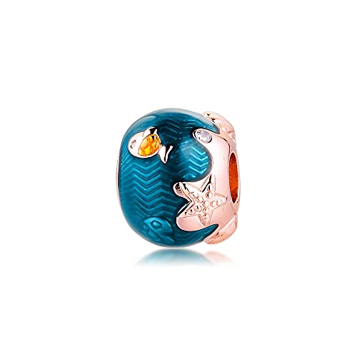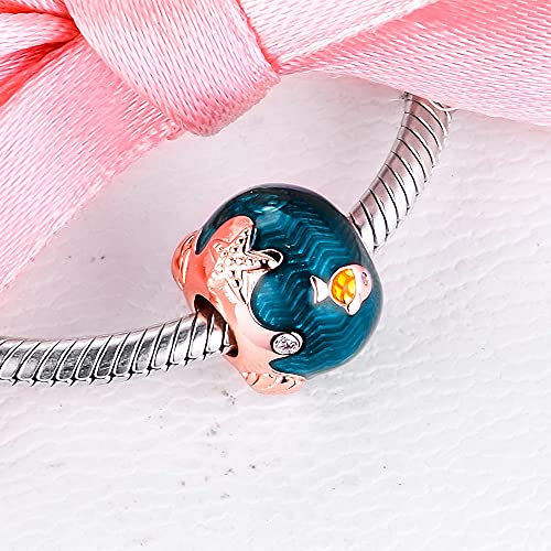 WUXEGHK Adatto A Pandora Bracciale Shimmering Ocean Waves & Fish Charm per Gioielli Che Fanno Charms Argento 925 Perlina Originale