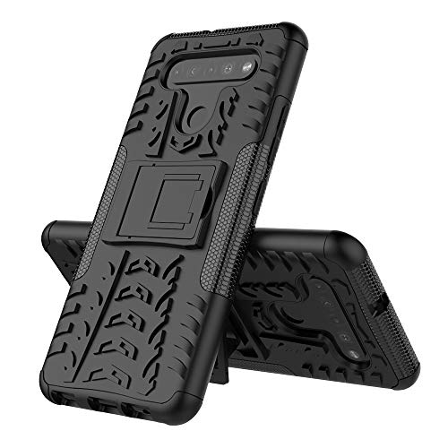 Wuzixi Cover per LG k41S. [Heavy Duty] [Hybrid 2 in 1][Staffa] Kickstand Tire Texture Case Protective Cover Custodia per LG k41S.Nero