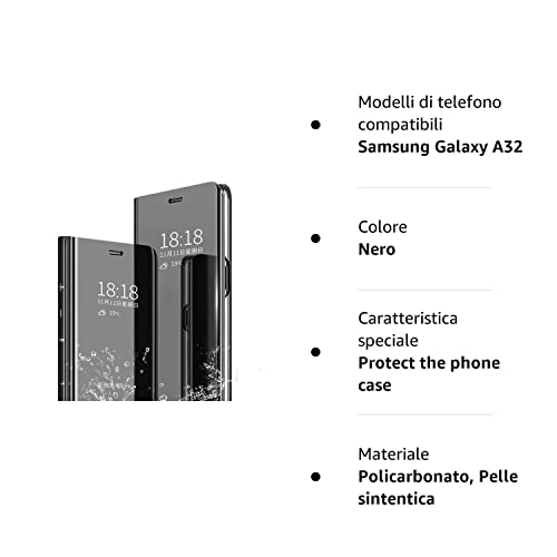 Wuzixi Custodia per Samsung Galaxy A32 5G. Smart Case, specchio di impiallacciatura, specchio custodia a portafoglio, custodia per Samsung Galaxy A32 5G.Nero